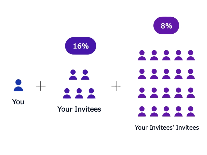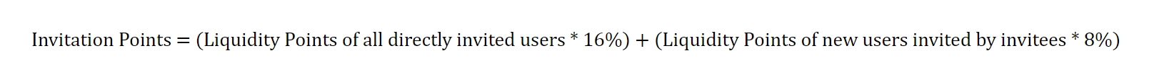 The inviter can receive 16% of the invitee's Liquidity Points (first tier). If the invitee invites others, the first-tier inviter can receive 8% of the Liquidity Points from the second-tier invitees.